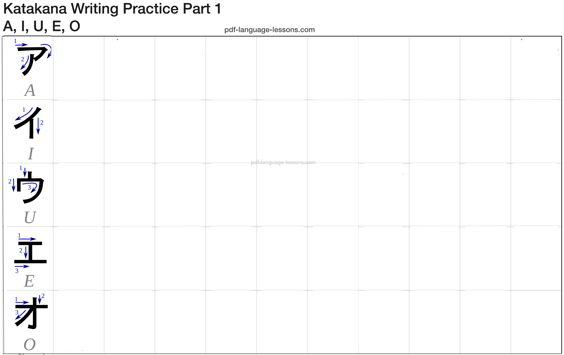 Katakana memory hint worksheets are designed to support teachers in introducing how to write katakana characters with correct stroke orders and provide practice for. The ultimate, printable katakana worksheets. Learn the basics for writing and reading int japanese through this free ebook at japanesepod101!
